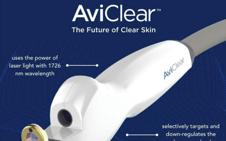 AviClear is the first-in-class laser that is FDA cleared to treat acne of any severity. It is a safe and effective alternative to prescription treatments. AviClear works by targeting the sebaceous (oil) glands in the skin to decrease their size and oil production, both of which contribute to acne formation. It is unique in that it effectively treats mild to severe acne in all skin types. Three quick 30 minute sessions spaced monthly have demonstrated improvement in acne that is comparable to results seen with Accutane at 6 months post treatment. Additionally, studies have shown that future breakouts tend to be shorter and milder. AviClear works well for people who have acne but wish to avoid traditional oral medications such as antibiotics or Accutane.